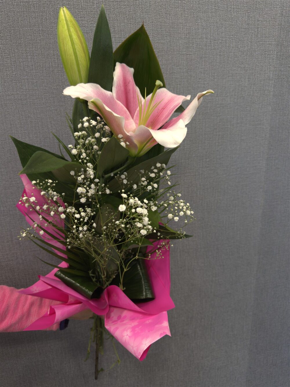 1 szál királyliliom zölddel csomagolva