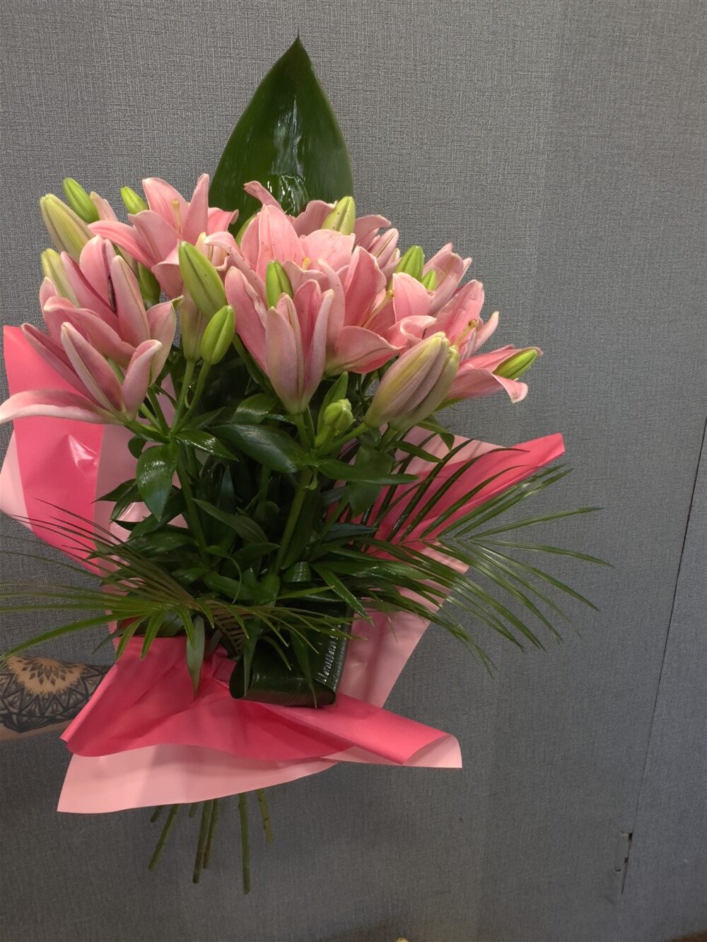 7 szál ázsiai liliom zölddel csomagolva